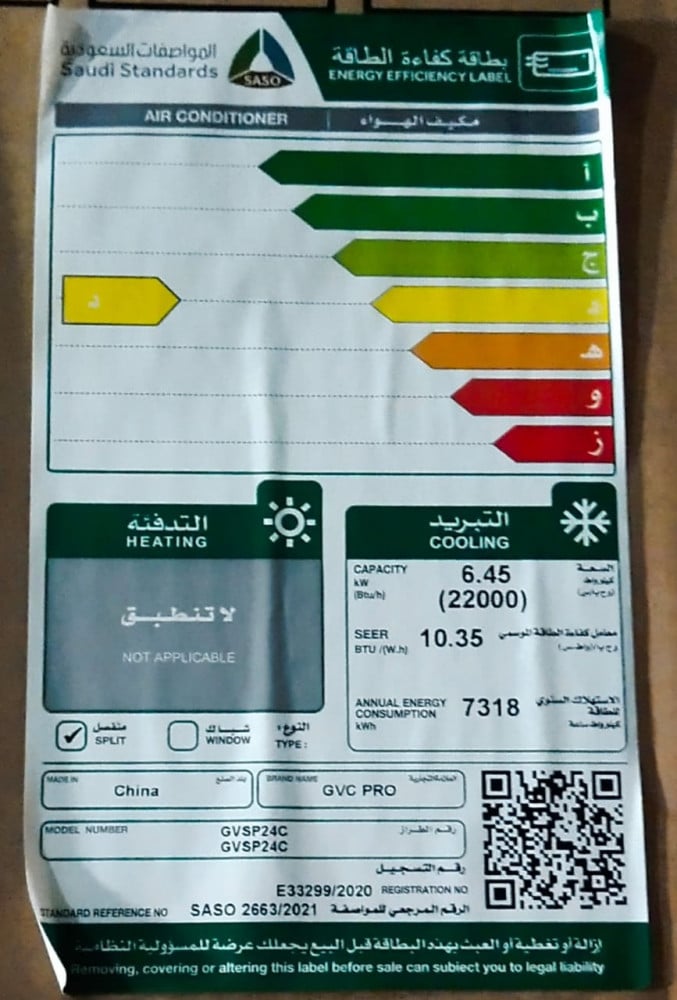 مميزات مكيف اسبليت جي في سي بارد22000 وحدة GVSP24C