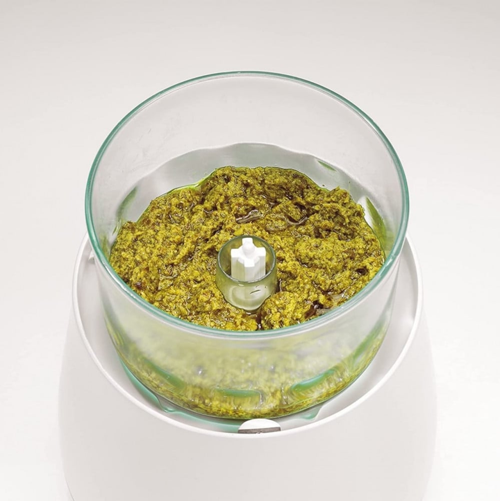 مفرمة مولينيت من مولينكس سهلة الاستخدام للغاية مع وجود ثلاث أزرار للضغط على الغطاء. كما أن محتويات المفرمة جاهزة للاستخدام. الأمر بهذا البساطة! تبلغ سعتها 300 غرام وتُعد رائعة للحوم الأعشاب وأكثر من ذلك، بقدرة 800 واط، فهي قوية بما يكفي لإنجاز مهام التقطيع الأكثر صعوبة. يمكن استخدامها لتقطيع البصل والثوم والأعشاب الممتازة واللحوم والجوز والجبن والخضروات وغير ذلك الكثير. تبلغ سعة الإبريق 330 غرام شفاف لتسهيل الرؤية، ويستخدم لصنع الصلصات والجواكامولي والبيستو وما إلى ذلك. القدرة